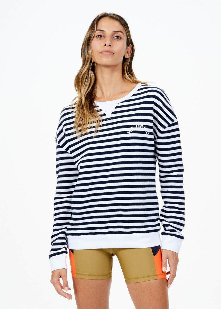 Cozy up in The Upside's Alena Crew. This relaxed-fit is made of super soft material and fun, the fashion-forward print will elevate your loungewear. This is slightly oversized, we recommend sizing down for a more fitted look.