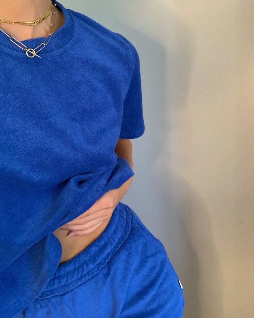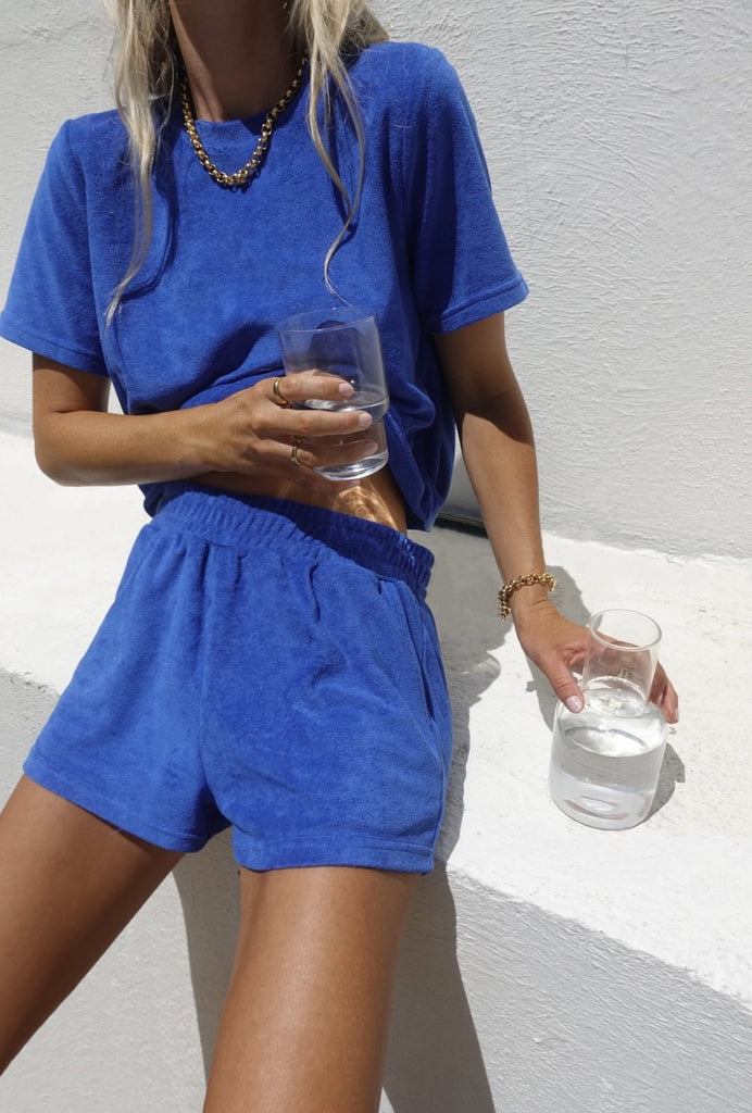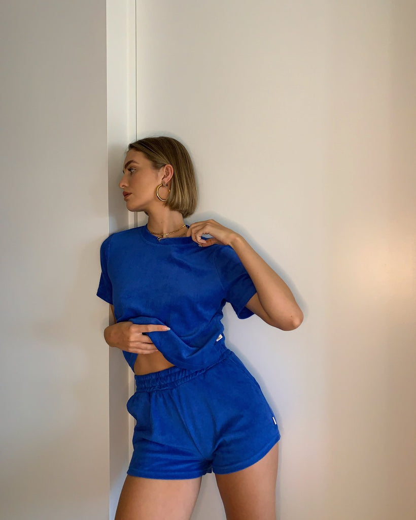 Taking summer comfort to new levels with Araminta James' classic terry tee. We love the relaxed fit, super soft fabric, and flattering cut of this shirt. We're pairing it with the matching shorts for an effortless look. Wear to the pool or lounging at home.