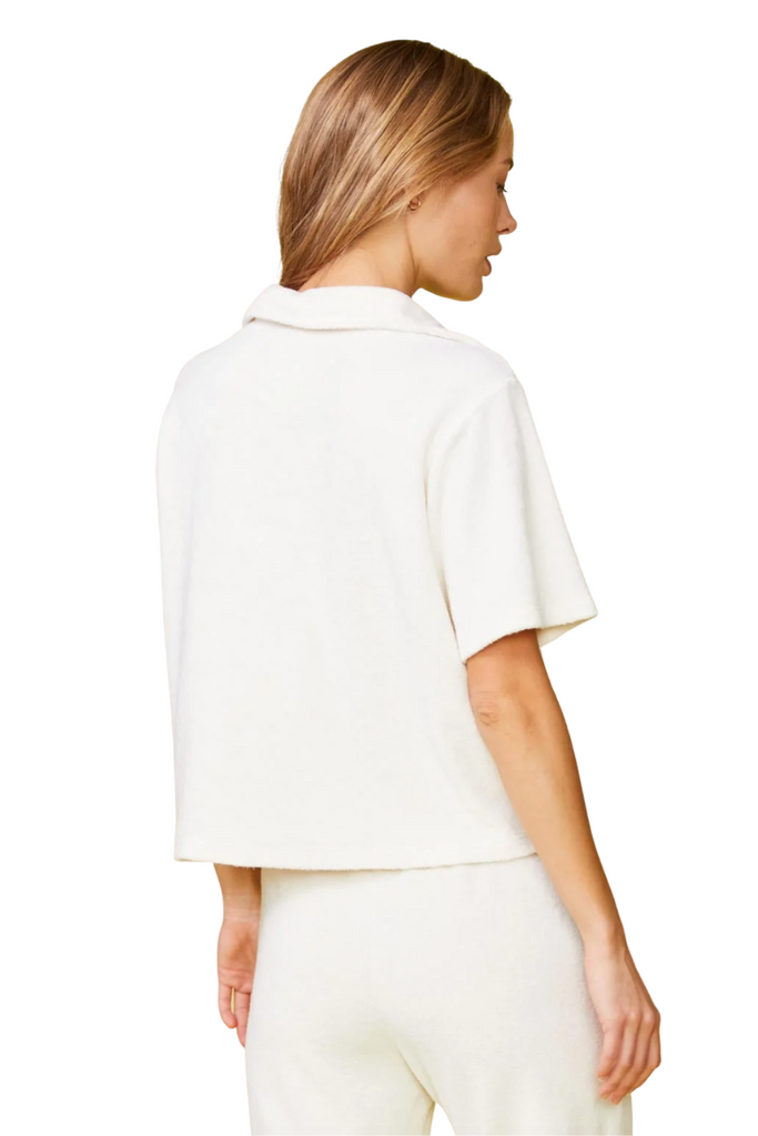 This terry cloth button-up shirt has vacation vibes written all over it! We love its relaxed silhouette which makes it super comfortable. Pair it with the matching shorts for a super chic, put-together look.