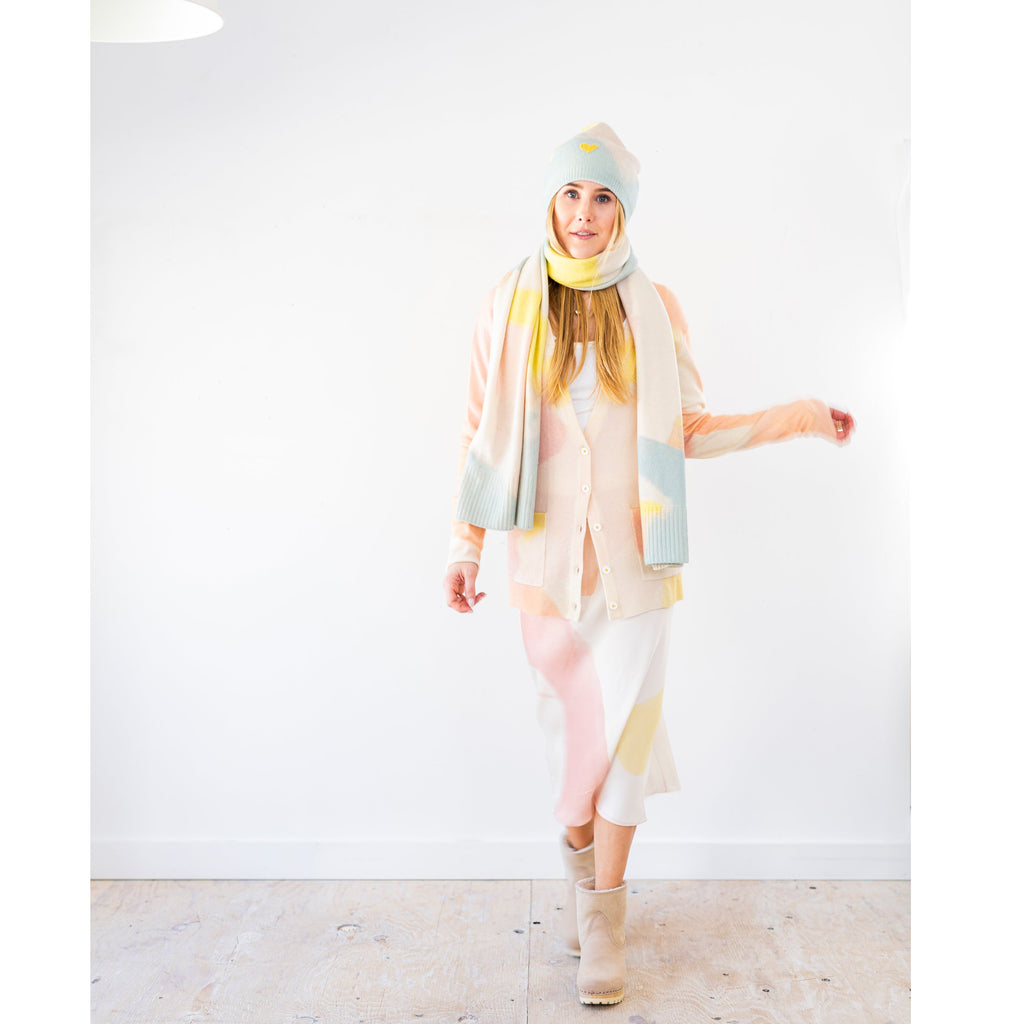 This cashmere cardigan from Kerri Rosenthal is sure to send love to you and everyone else throughout the day. The beautiful print is just the perfect amount of added detail. Pair with high waist denim and your favorite boot for a chic on-duty look.