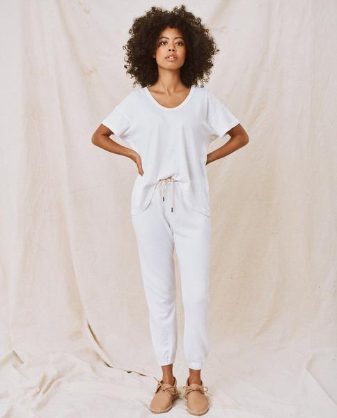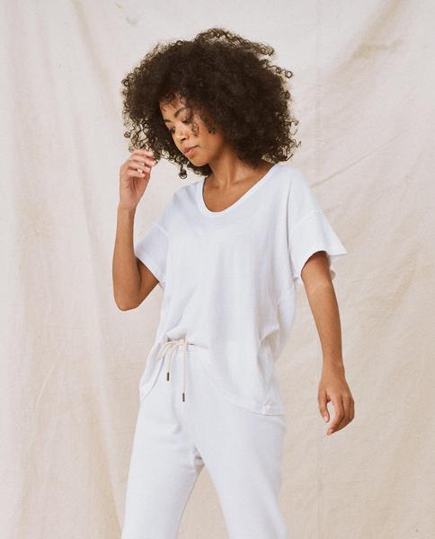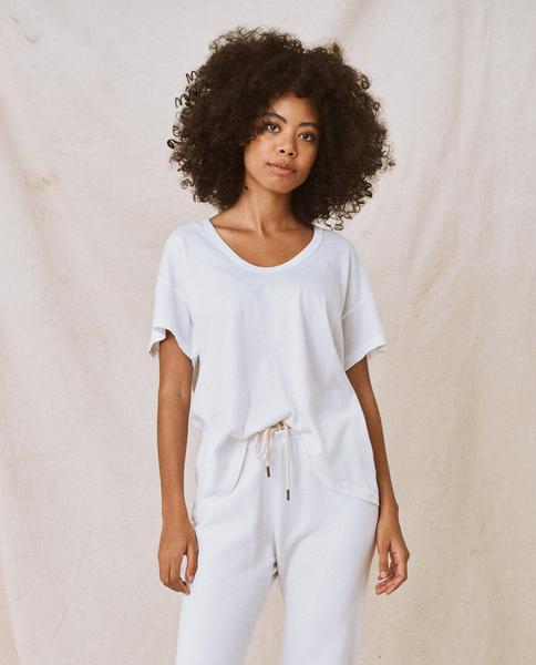 This classic t-shirt from The Great is relaxed and flattering. With a slight u-shape neckline, this tee adds a bit of femininity and an easy choice.