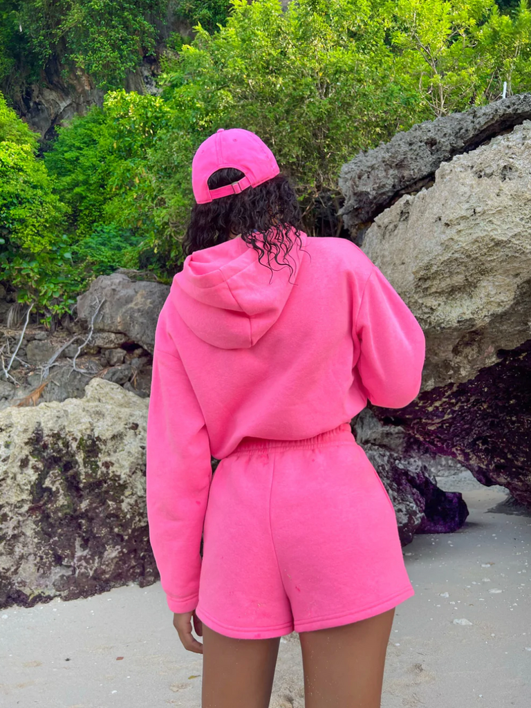 Crafted from a premium fleece fabric, the weekend fleece short features a flattering, high waist cut and a mid-thigh length for the perfect casual look. Pair it with the weekend hoodie for a chic put-together look.
