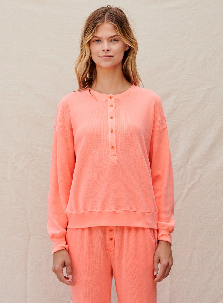 We love this elevated henley sweatshirt from Sundry. The relaxed fit, peaceful color, and soft fabric make it a closet staple. We're planning to wear to the studio, fireside in Malibu, or running around town in Aspen.