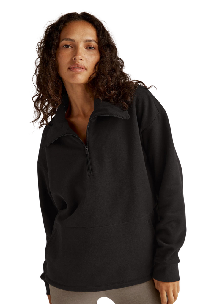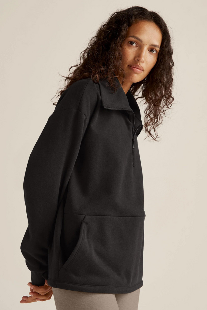 Throw on the Trek pullover and head for the hills! It's the adventure-ready comfort zone, whether you're exploring the great outdoors or your couch for Netflix and chill. Featuring a quarter zip front, rib cuffs, collar, and kangaroo pocket, its loose fit and long length are uniquely crafted to flatter every shape, wear-tested to ensure the perfect fit in every size.