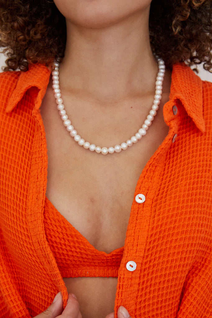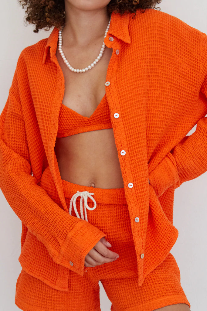 Beautiful summer go-to. We love to wear this waffle button-down over a swimsuit to the pool or over leggings to the studio. An easy layer for Aspen's weather.