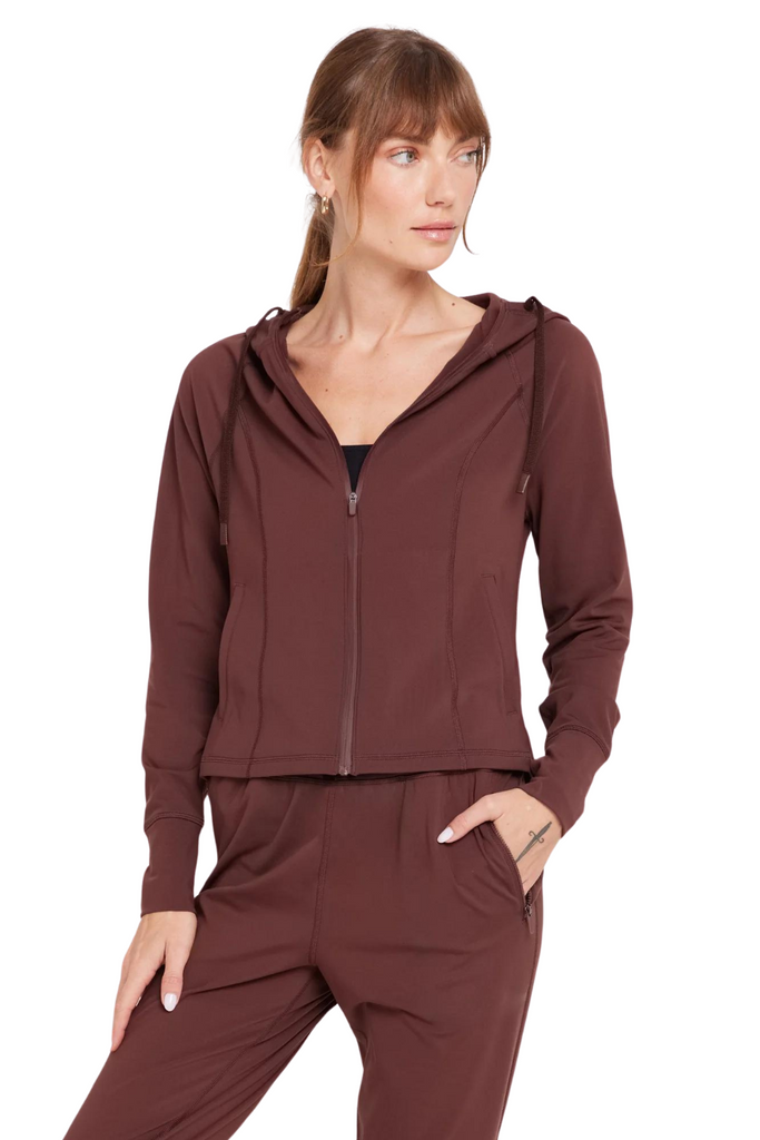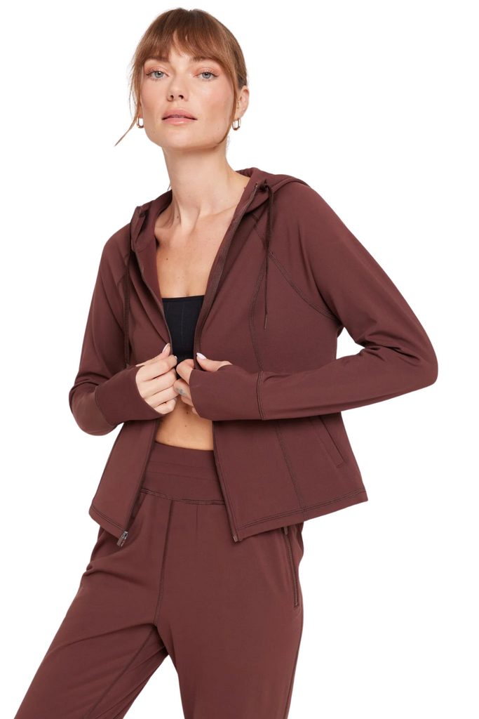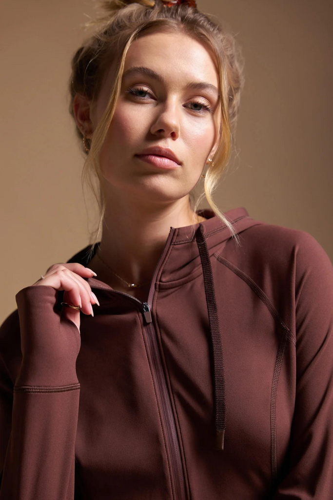 Embrace warmth with this slim-fit, full-zip hoodie. Featuring front side pockets and extended cuffs with thumbhole slits, it's designed to keep you cozy and stylish all day long.