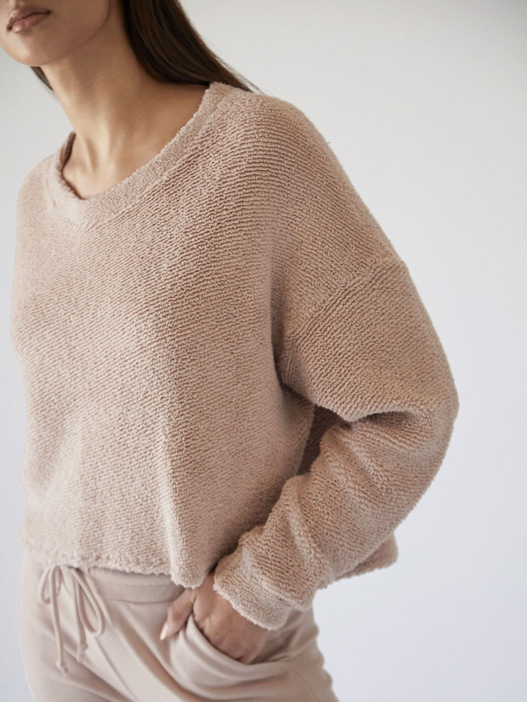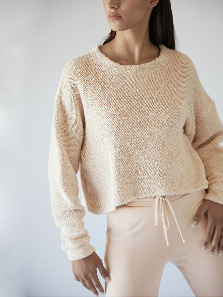 We love this pullover from Lanston. It's chic for any activity whether you're running errands or heading to the studio. We love the versatility, relaxed fit, and gorgeous terry fabric.