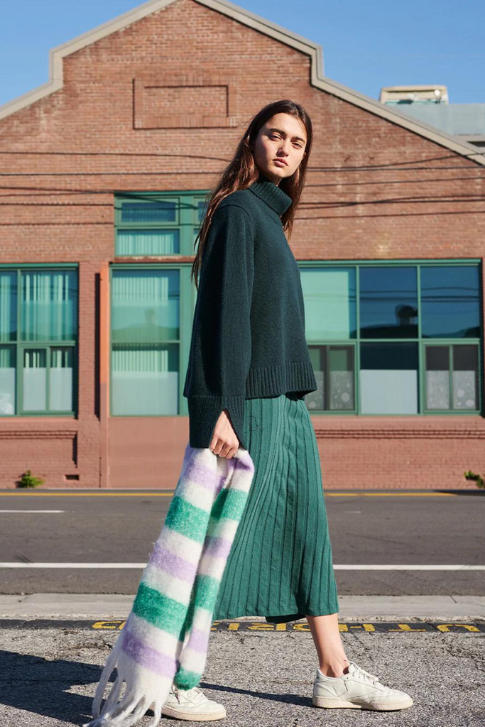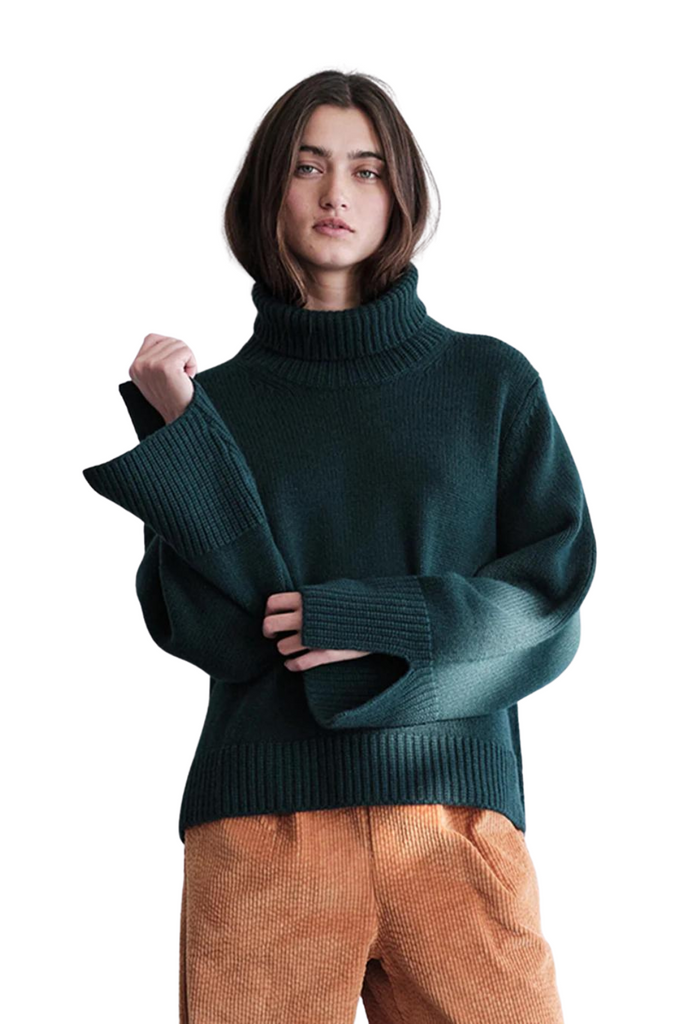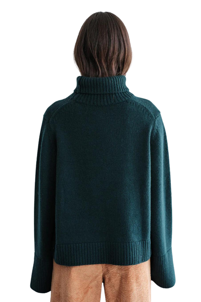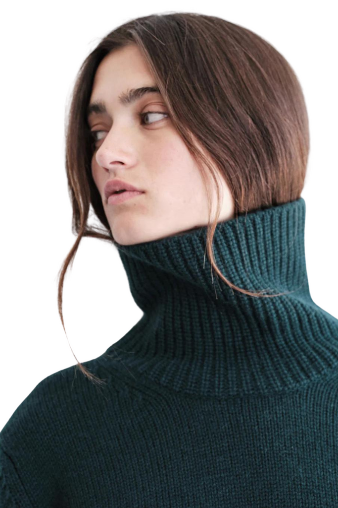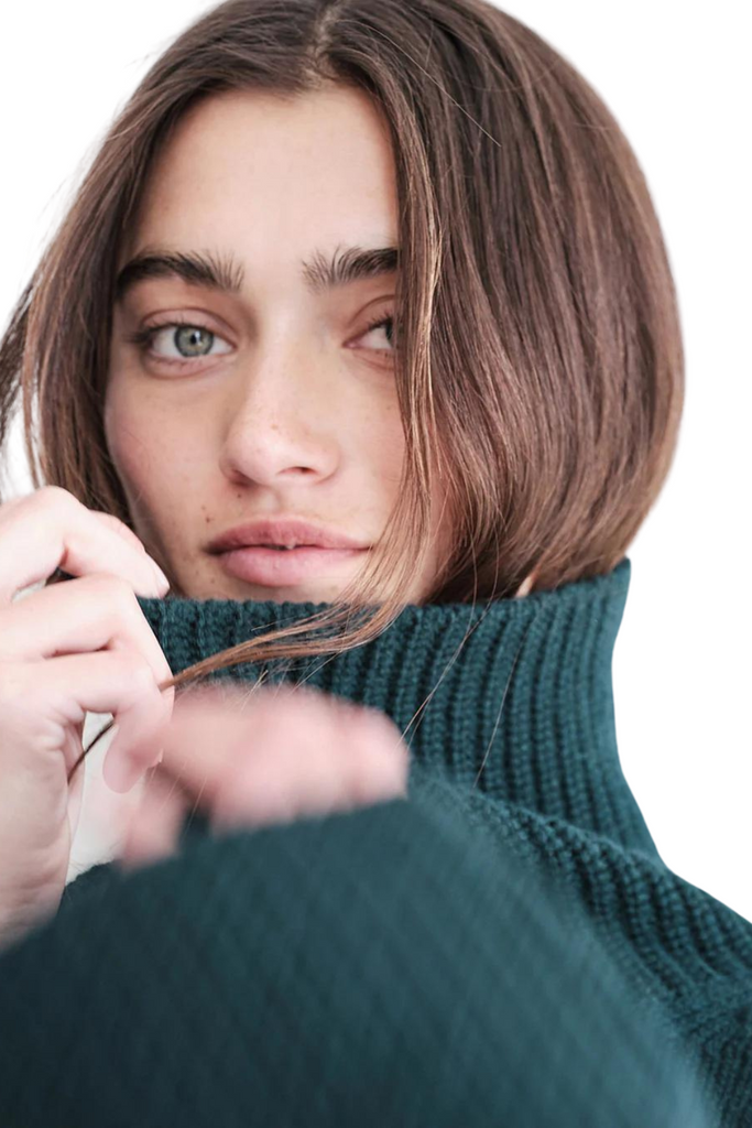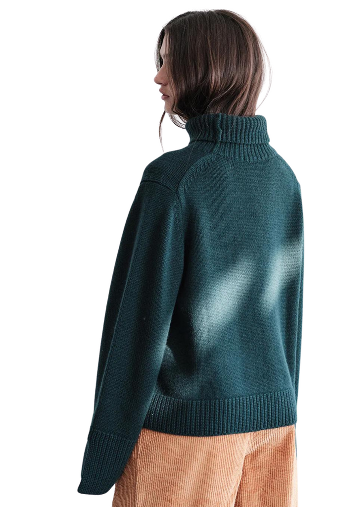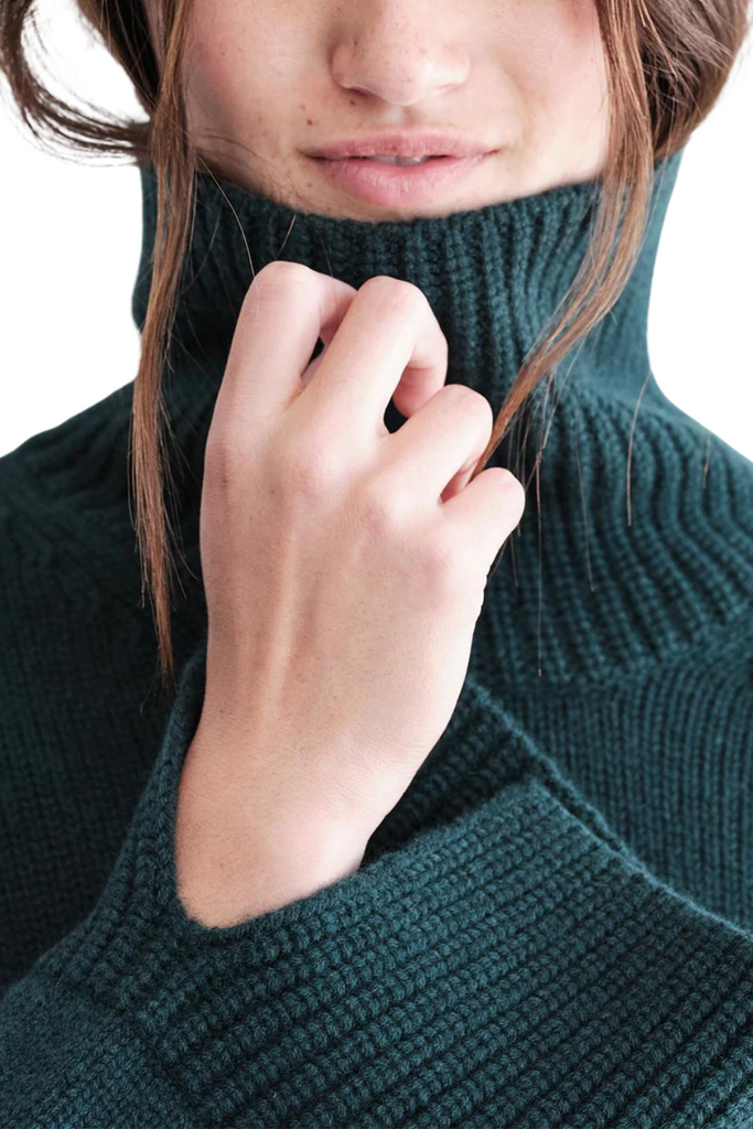 Embrace comfort on colder days with this cozy turtleneck sweater, featuring a relaxed fit, contrasting trims, and slits on the wide sleeves, all crafted from a wool/cashmere blend.